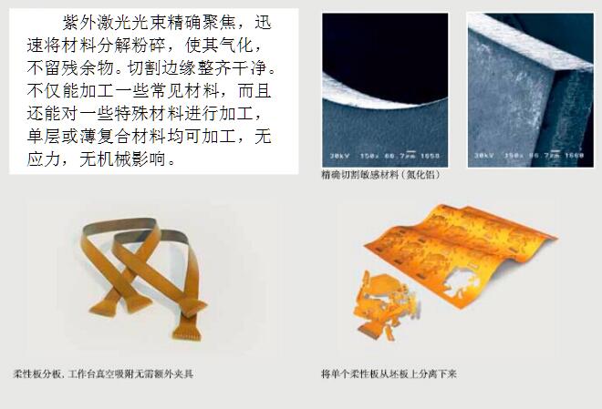 采用UV紫外激光作為工具,冷加工方式,結構緊湊、易安裝、操作簡單,維護方便。幾乎可以加工所有材料,功能強大,精密控制及加工效率極高,是開發(fā)創(chuàng)新產(chǎn)品的好幫手。